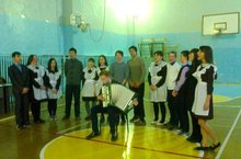 Спел песню "Наша армия" обладатель Гран-при, победитель в номинации "Находка года" Сухов Андрей - ученик 2в класса. Показала мастер-класс по строевой подготовке команда 8а класса, призеры конкурса "Снежный патруль" и "Строен в строю, силен в бою".
