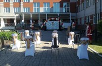 Мероприятие проходило в необычном для всех режиме, в здании были соблюдены все меры безопасности, у каждого были маски и перчатки. Так как мероприятие проходило на улице, их можно было снять.