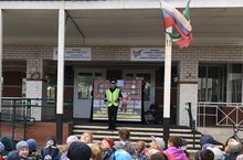 3 нче урта гомуми белем бирү мәктәбеТ. Гыйззәттә ЮХИДИ хезмәткәрләре беренче сыйныф укучылары өчен театраль чыгыш белән булдылар. Уен формасында балалар белән юл йөрү кагыйдәләрен, светофор сигналларының төсен һәм аның төрләрен искә төшерделәр. Беренче уку көненнән соң укучыларның күңелле хисләре һәм күтәренке кәефләре калды.