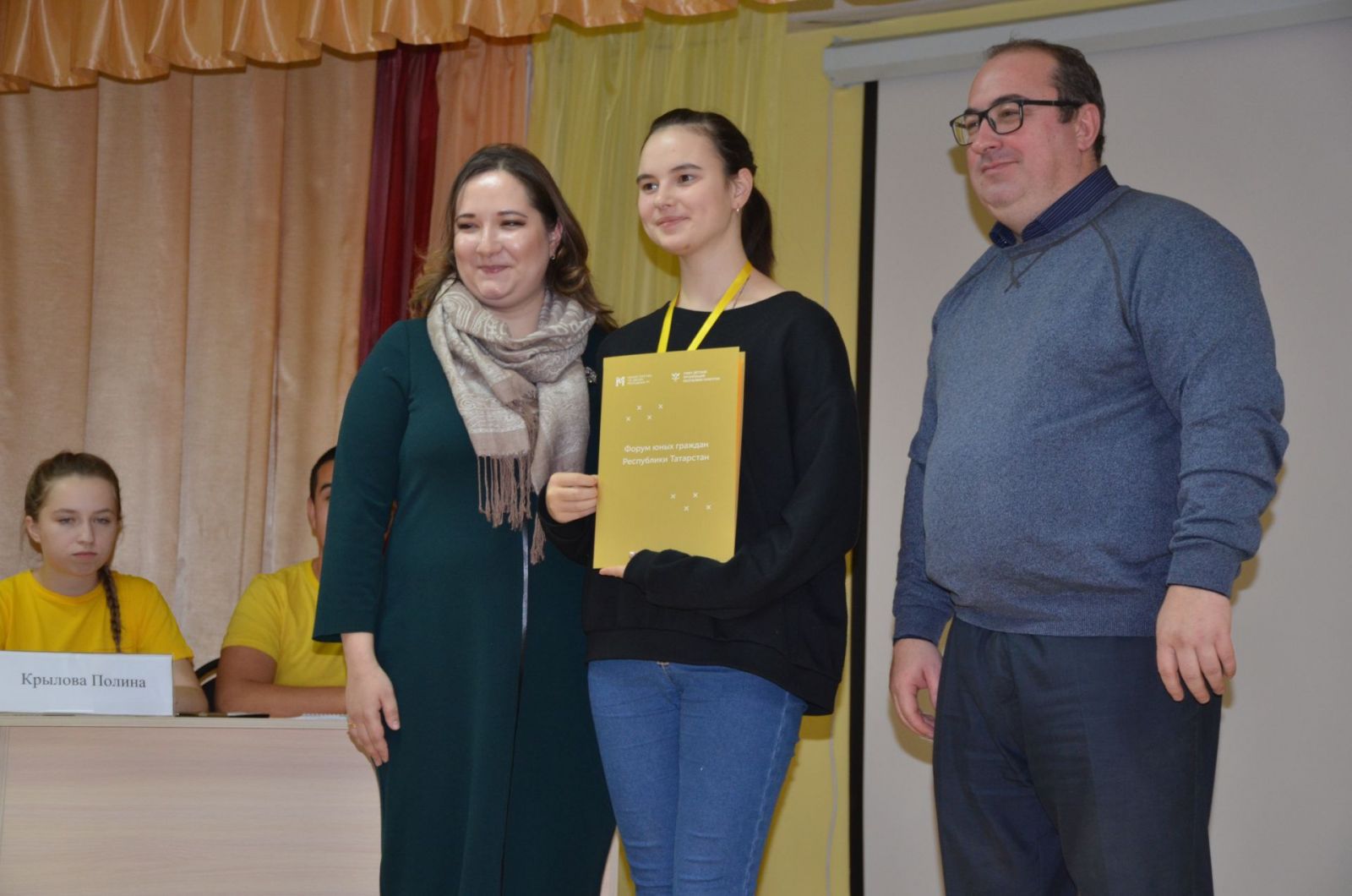 В рамках форума группе юношей и девушек - Юрьевой Олесе ученице 10 класса, руководителям - Гиззатуллиной А.Р. молодежных организаций за большой вклад в развитие детского движения были вручены Благодарственные письма от министра по делам молодежи Республики Татарстан.