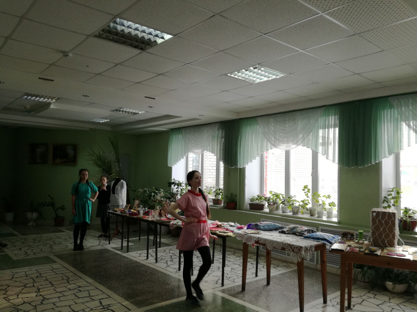 В школе сегодня проходит ЯРМАРКА - РСПРОДАЖА приуроченный Международному женскому дню 8 Марта. Ученицы 6 класса защищали свои проекты по технологии и организовали ДЕФИЛЕ готовой одежды.