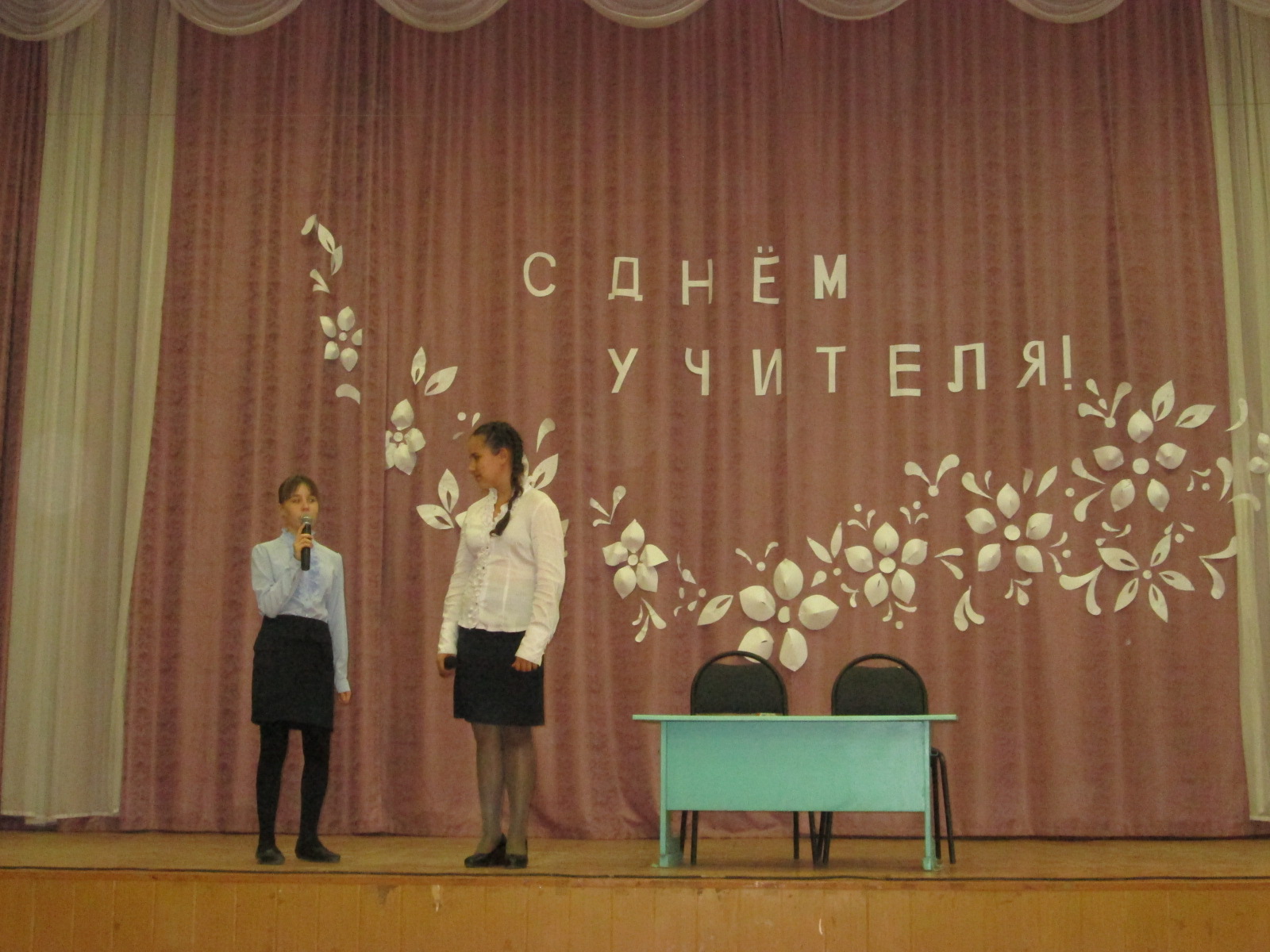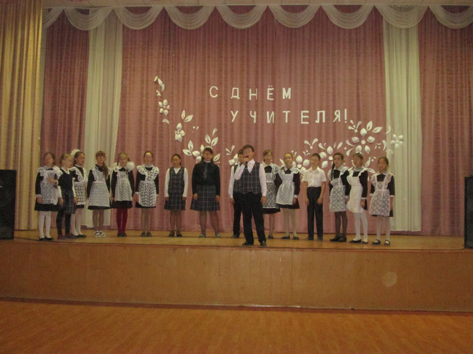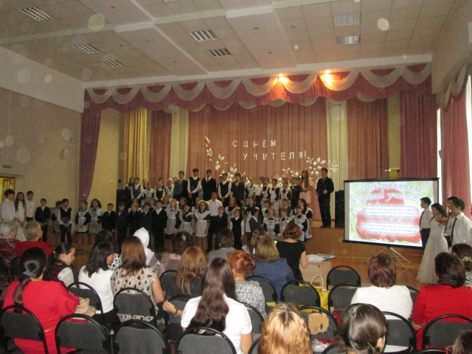 День Учителя – один из самых любимых праздников в нашей стране. Этот день дарит хорошую возможность всем, кто желает выразить глубокие чувства благодарности и признательности своим Учителям. В нашей школе ежегодно в преддверии праздника преображаются классы, рекреации, открываются новые выставки, проводятся концерты. И этот год не стал исключением. С самого утра ученики встречали всех учителей с букетами цветов и сюрпризами. Приглашены ветераны педагоги на праздничный концерт. Атмосфера, царившая в этот день в актовом зале, была торжественной и неформальной одновременно: радость встречи педагогов-ветеранов и общения с коллегами, теплота произнесенных со сцены поздравлений, волнение выступавших. Состоялся концерт, посвященный одному из самых вдохновенных и трогательных праздников — Дню учителя. А сам праздничный концерт «Учитель, перед именем твоим...» - это творческие выступления учеников нашей школы, душевные песни и веселые танцы, театральные этюды, наполненные искрометным юмором. Во время праздника на сцене можно было увидеть и учителей. Набиева Г.Ф., Коробейникова К.А. вместе со своими учениками исполнили песни, посвященные нашим учителям. Праздник всем очень понравился.СПАСИБО ВАМ, НАШИ УЧЕНИКИ, ЗА ТАКОЙ КОНЦЕРТ. -