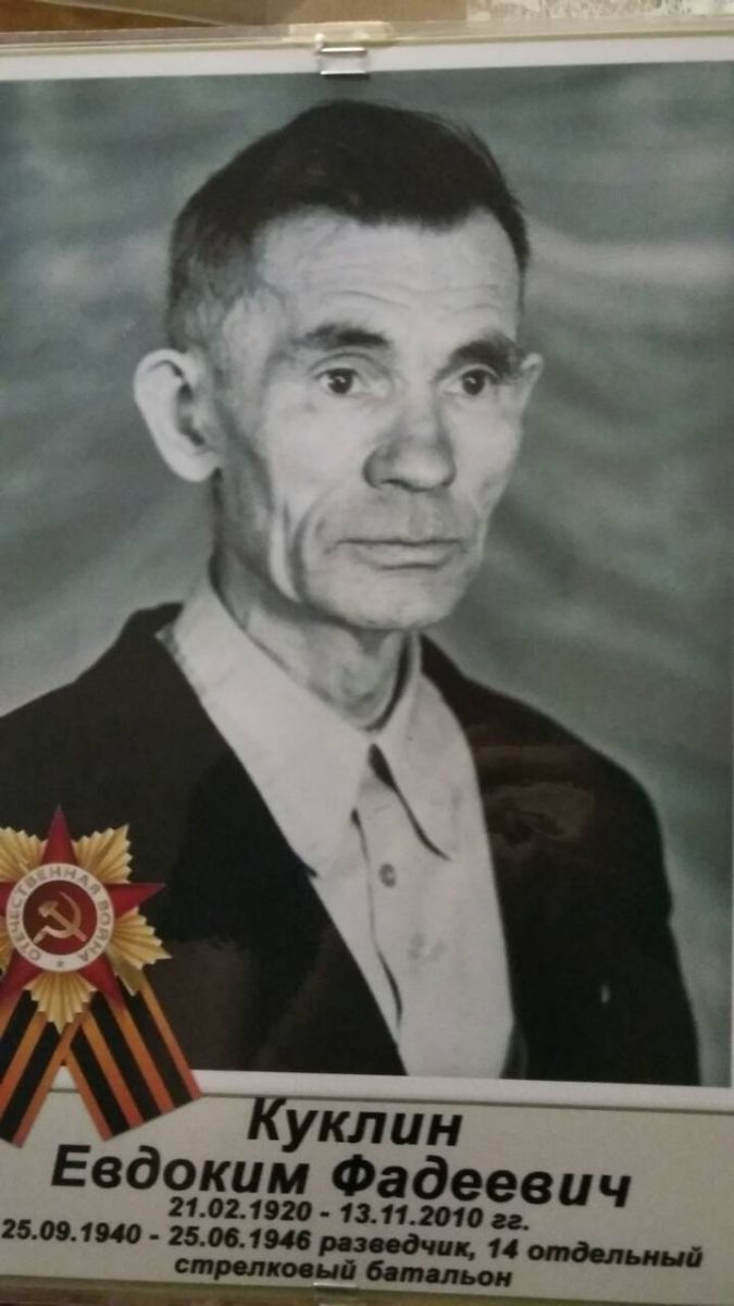 Куклин Евдоким Фадеевич (21.02.1920-13.11.2010) - разведчик, 14 отдельный стрелковый батальон