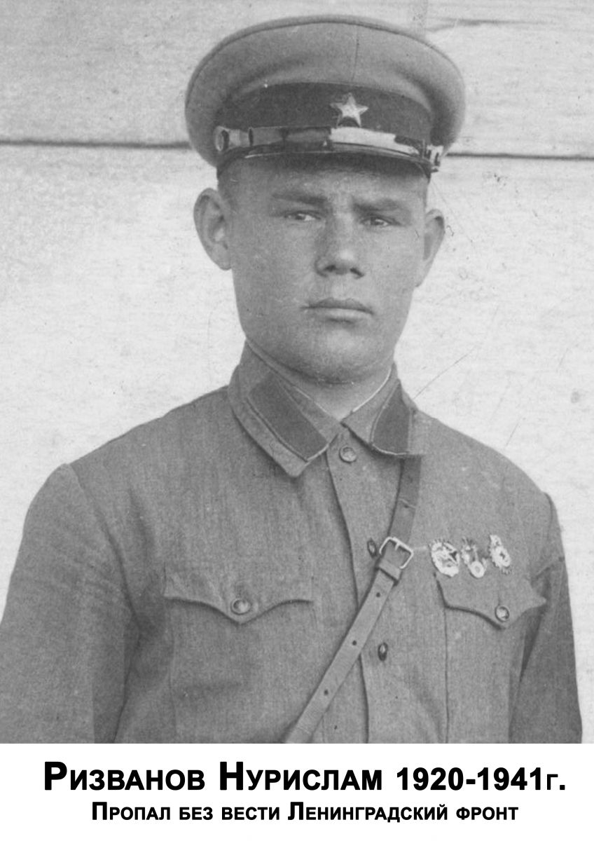 Ризванов Нурислам Рамазанович (1920- 11.1941) - пропал без вести. Ленинградский фронт. Место службы 155 стрелковый полк, 98 сд.