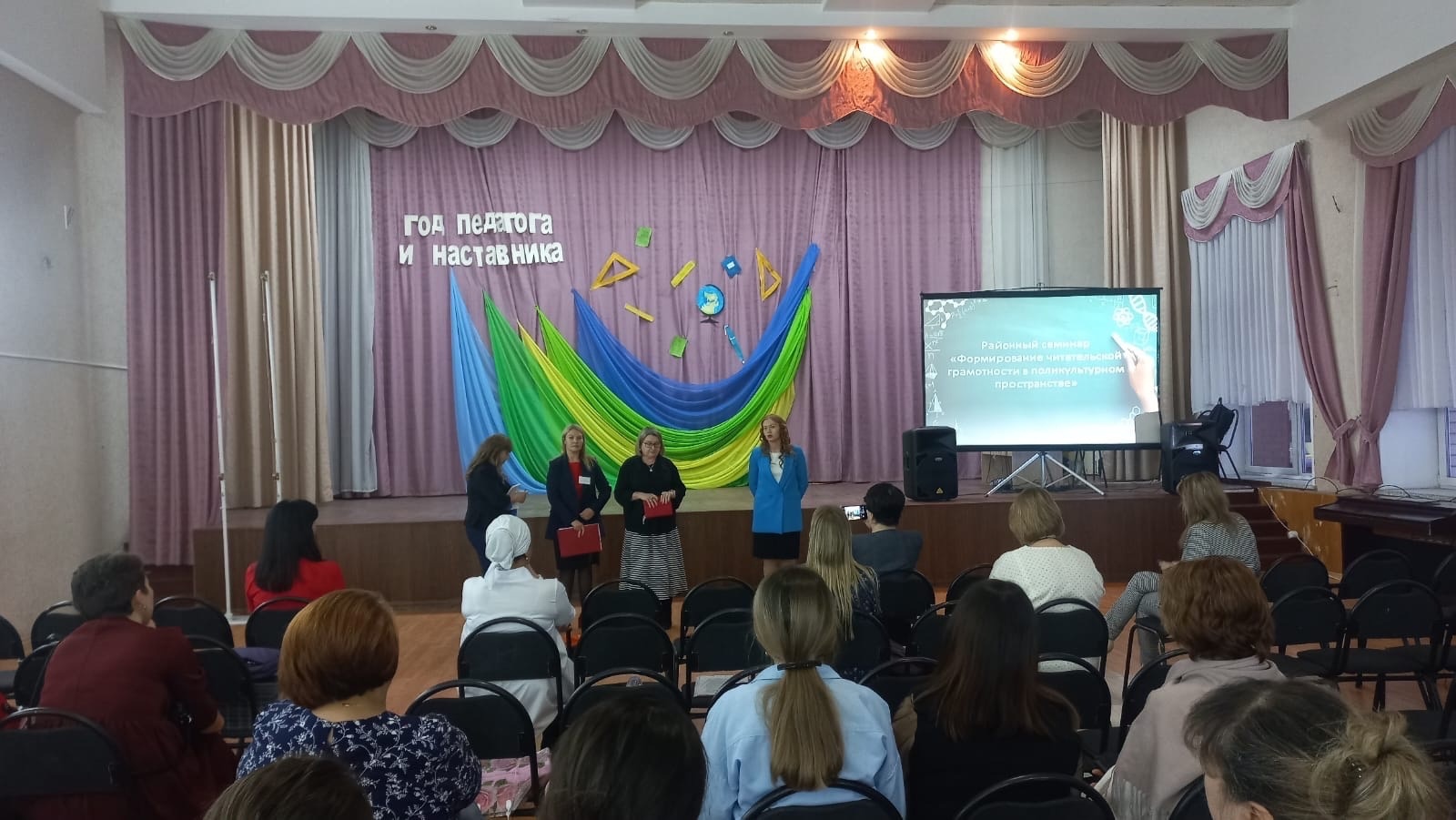 Опубликовано: 10.02.2023На базе нашей школы 10 февраля 2023 года прошел районный семинар «Формирование читательской грамотности в поликультурном пространстве».