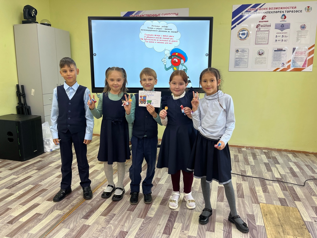 3 команда 4 станция буйлап сәяхәткә чыкты, балалар табышмаклар чиштеләр, сорауларга җавап бирделәр, кроссвордларны чиштеләр, тимер юлларда куркынычсызлык кагыйдәләрен кабатладылар!