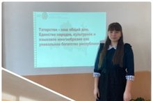 20 февраля 2021 года в Школе 4 прошёл парламентский урок, посвящённый объявленному в республике Году родных языков и народного единства, на тему: «Татарстан - наш общий дом. Единство народов, культурное и языковое многообразие как уникальное богатство республики». В мероприятии приняли участие обучающиеся 7Б класса. Урок провела учитель истории и обществознания Кахриманова Л.М.
