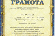 В рамках муниципального этапа Всероссийской Спартакиады среди обучающихся школьных спортивных клубов Агрызского муниципального района команда мальчиков заняла 2 место в соревнованиях по баскетболу среди юношей.