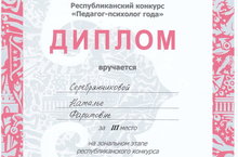 Педагог-психолог нашей школы Серебрянникова Наталья Фаритовна заняла 3 место на зональном этапе республиканского конкурса "Педагог-психолог года". Поздравляем ее и желаем удачи на республиканском этапе!