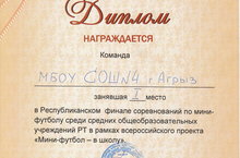 Ученики нашей школы заняли 1 и 2 место в Республиканском финал соревнований по мини-футболу среди средних общеобразовательных учреждений РТ в рамках всероссийского проекта "Мини-футбол - в школу". Молодцы!!!