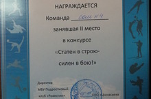 Команда нашей школы заняла второе место в муниципальном конкурсе "Статен в строю - силен в бою", а также в военно-спортивной игре "Снежный патруль". Молодцы!!!