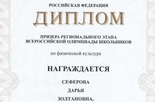 Ученица 11 класса Сеферова Дарья стала призером регионального этапа Всероссийской олимпиады школьников по физической культуре.