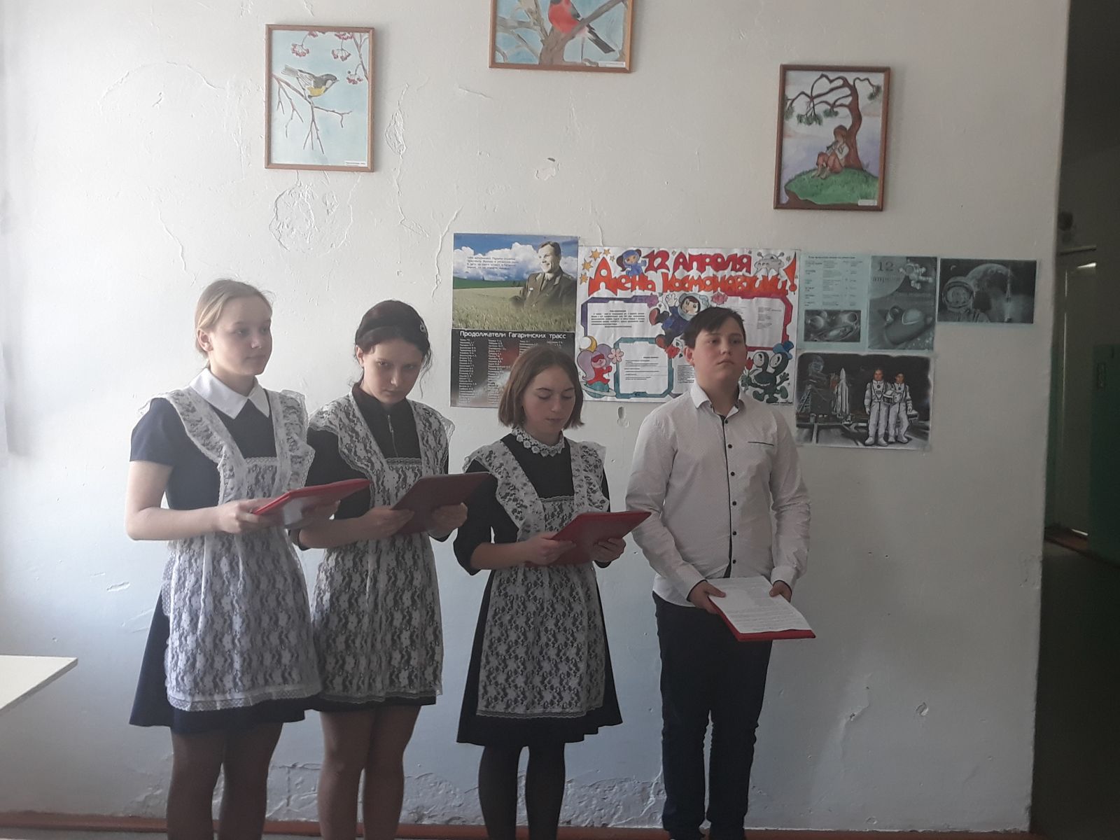 Сегодня в школе, по традиции, началась Неделя космонавтики. Она началась с торжественной линейки "День космонавтики". Ученики 8 класса ознакомили с краткой историей полета человека в космос, читали стихи о космосе. Учитель физики ознакомила всех с планом Недели, объяснила условия конкурсов.