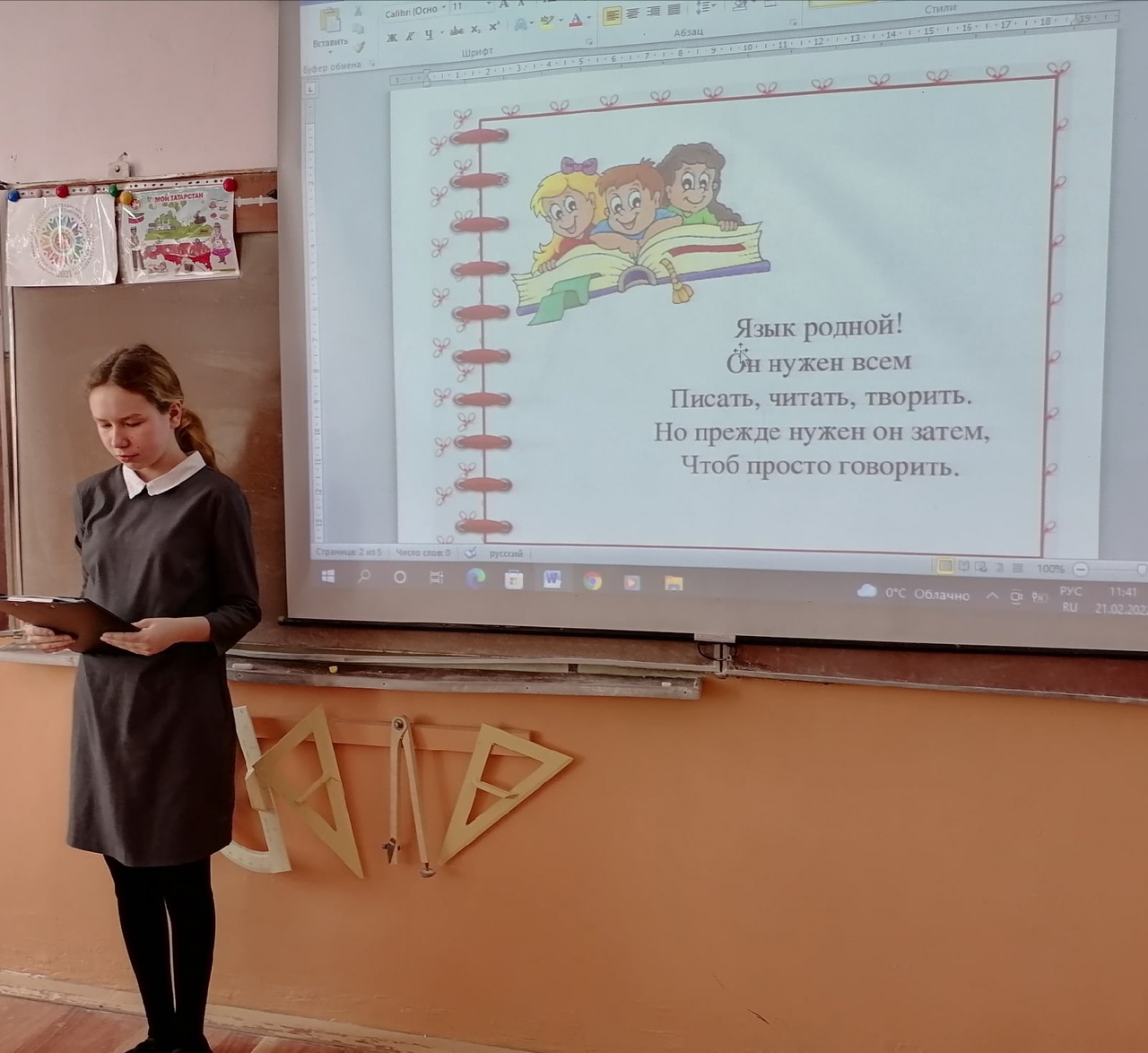 21.02.22 был проведен урок литературы в 7 классе (учитель Лукоянова Г.Г.) на тему " Тебе решать судьбу родного языка", посвященный Международному дню родных языков.