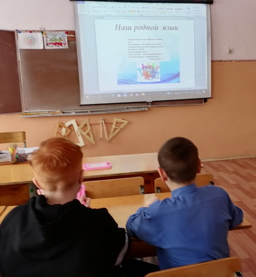 Международный день родного языка отмечается ежегодно 21 февраля. Он был учрежден в 1999 году. В ходе классного часа учащиеся выполняли предложенные задания. Итог: сегодня,состоялся очень важный разговор. Мы пришли к выводу, что надо бороться за чистоту родного языка. Чтобы быть достойным гражданином своей страны, сохранить ее культуру и традиции необходимо в совершенстве владеть родным словом. Будем беречь и любить наше русское слово, ведь с него начинается наша Родина.