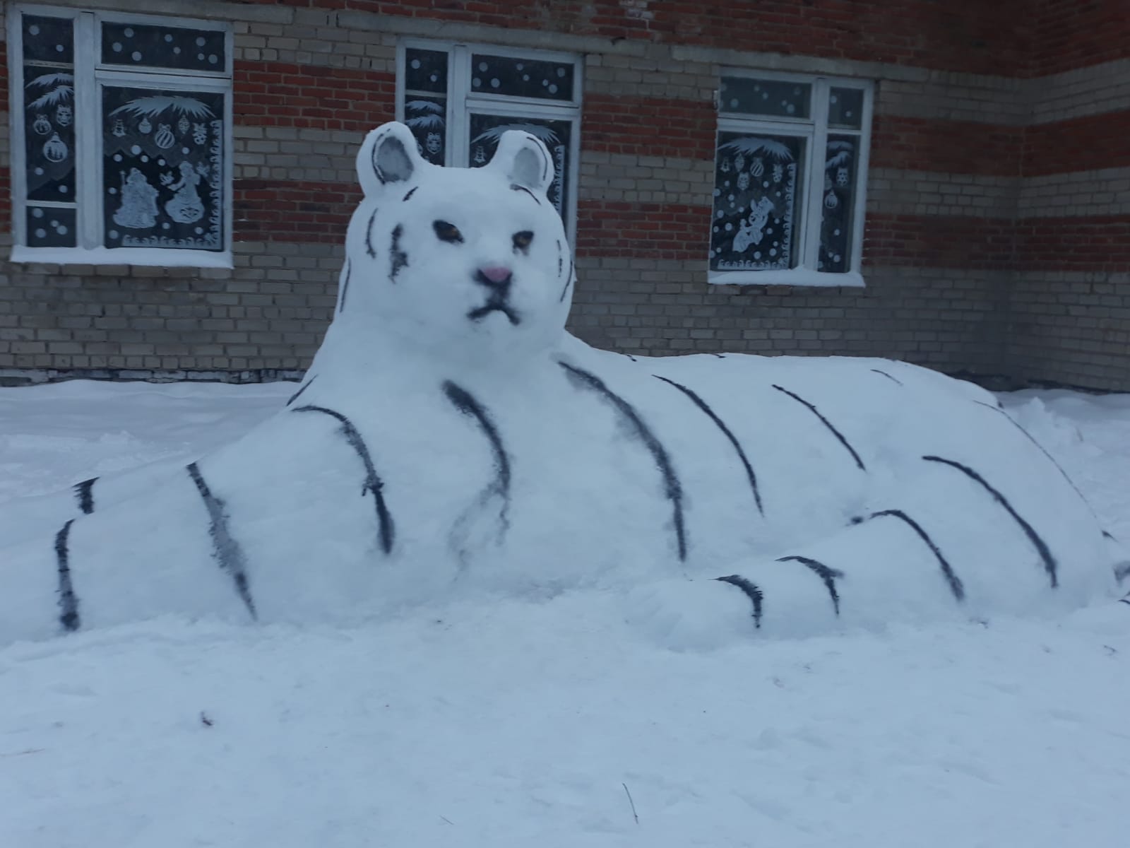 В школе вовсю идет подготовка к Новому году. На улице выстроились: красавец Тигр-символ года, Матрешка- символ Года родных языков и народного единства