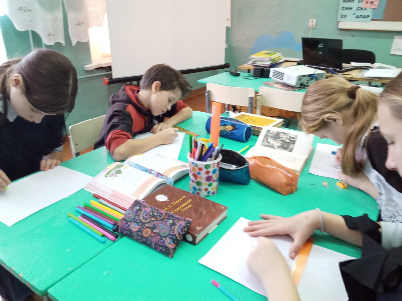 Было проведено очень много различных мероприятий: круглые столы "Детские и школьные годы Н.А. Некрасова (Красноперова Раушания Фирдинантовна), "Поэт и гражданин" (Кузнецова Любовь Витальевна); викторина "Жизнь и творчество Н.А.Некрасова"(Мордвинова Снежана Николаевна); литературная постановка "В вагоне" по произведению "Железная дорога"(Князева Людмила Ивановна и Лукоянова Галина Геннадьевна) и многое другое.Ребята с удовольствием участвовали в конкурсе чтецов, рисунков...