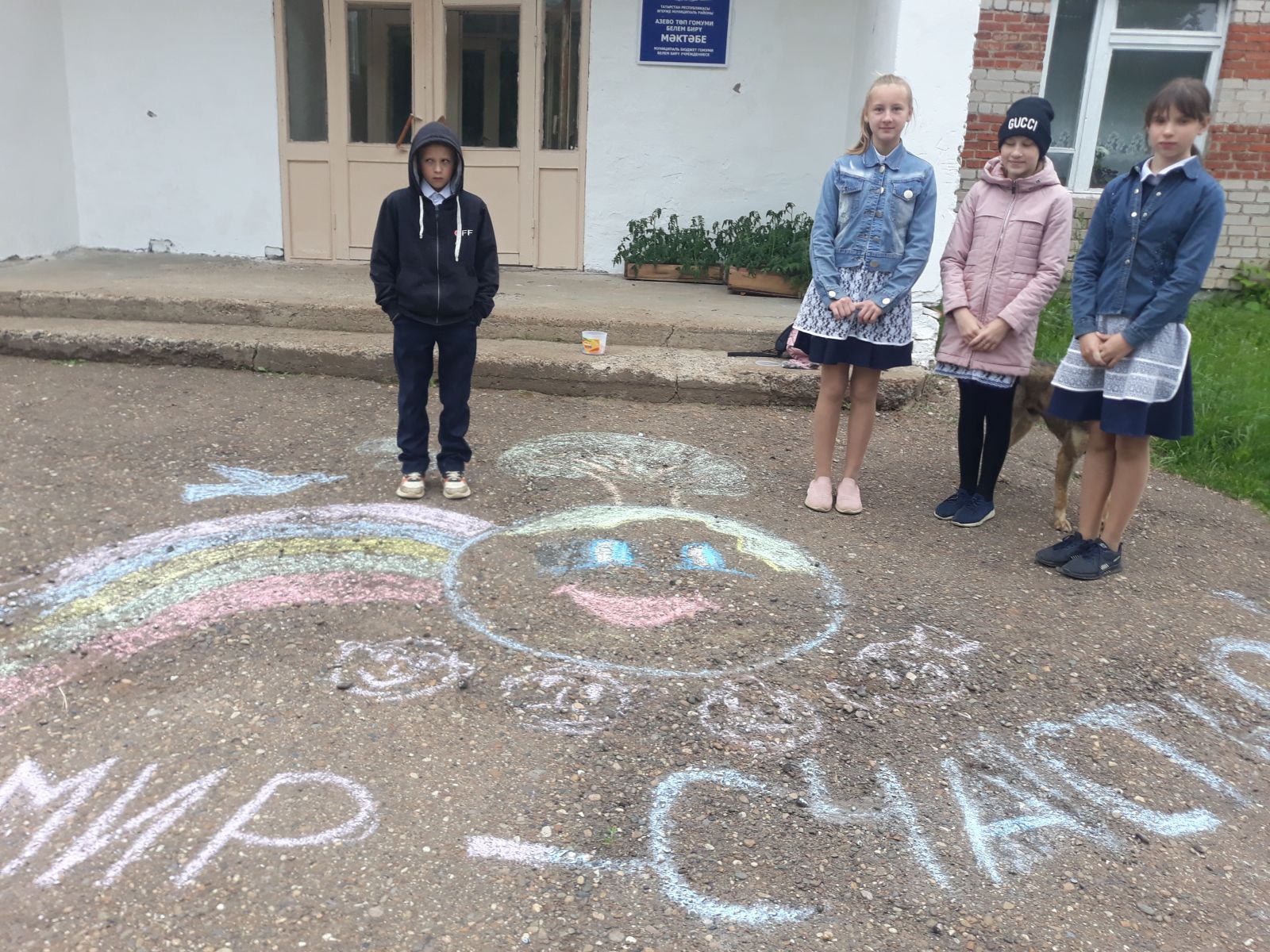 В Татарстане продолжается акция "Доброе слово другу", приуроченная к Международному дню защиты детей. Сегодня, 31 мая, наша школа присоединилась к данной акции. Учащиеся нарисовали рисунки на асфальте с добрыми пожеланиями.