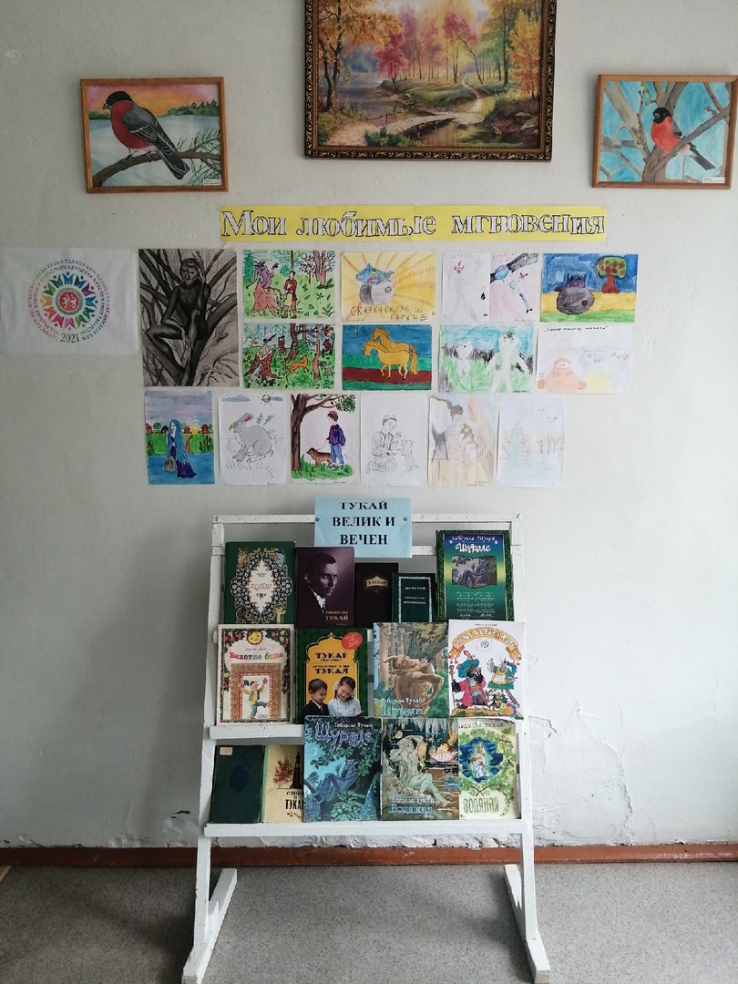 Книжная выставка "Тукай велик и вечен", выставка рисунков "Мои любимые мгновения" 24.04.2021
