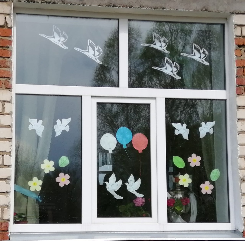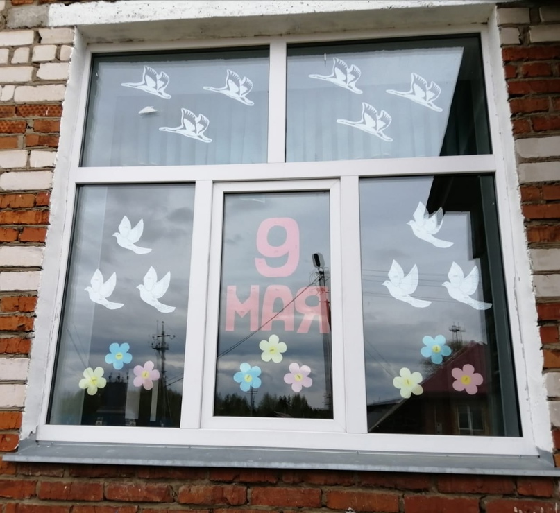 Учащиеся МБОУ Азевская ООШ приняли участие в акции "Окна Победы". Накануне празднования Дня Победы учащиеся и родители украсили окна домов , а также учреждений культуры и образования георгиевскими лентами, красными звездами, словами благодарности в адрес ветеранов, а также рисунками на военную тему. -