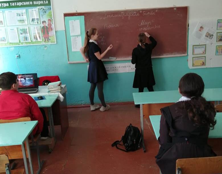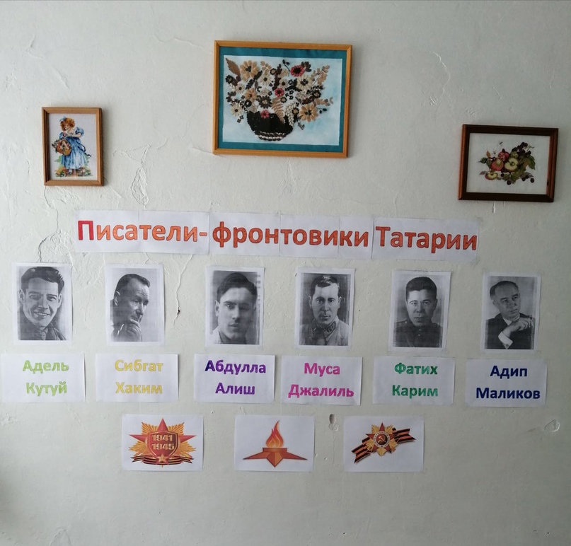 Давно отбушевала военная гроза. Давно уже на полях, где проходили жаркие сражения, колосится густая рожь. Но народ хранит в памяти имена героев минувшей войны. Сегодня в нашей школе было проведено мероприятие "Писатели - фронтовики Татарии", посвящённое 115 летию со дня рождения поэта-героя Мусы Джалиля. Ученики в своих выступлениях рассказывали о поэтах и писателях, участниках ВОВ, читали их стихотворения. Так же в школе был оформлен стенд с портретами героев.
