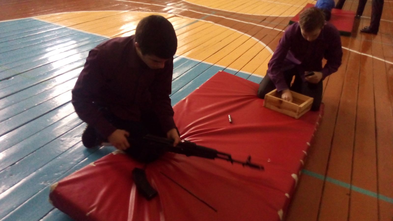 Также ученики 7-9 классов соревновались в умении разбирать-собирать автомат и заряжать магазин автомата.По сумме двух конкурсов определились победители: