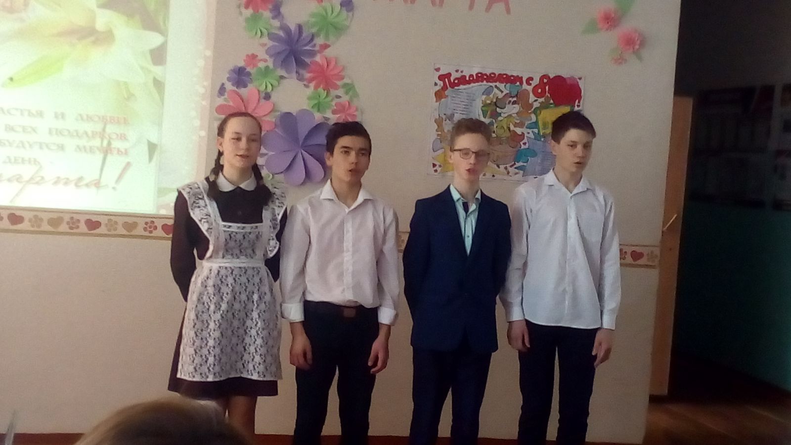 Сегодня для наших мам, бабушек и учителей ученики школы показали замечательный концерт, посвященный Международному женскому дню. Дети исполнили трогательные песни, читали проникновенные стихи, исполняли смешные сценки. Огромное спасибо организатору этого концерта- Маргасовой Е.А.! Все зрители и участники получили положительные эмоции.