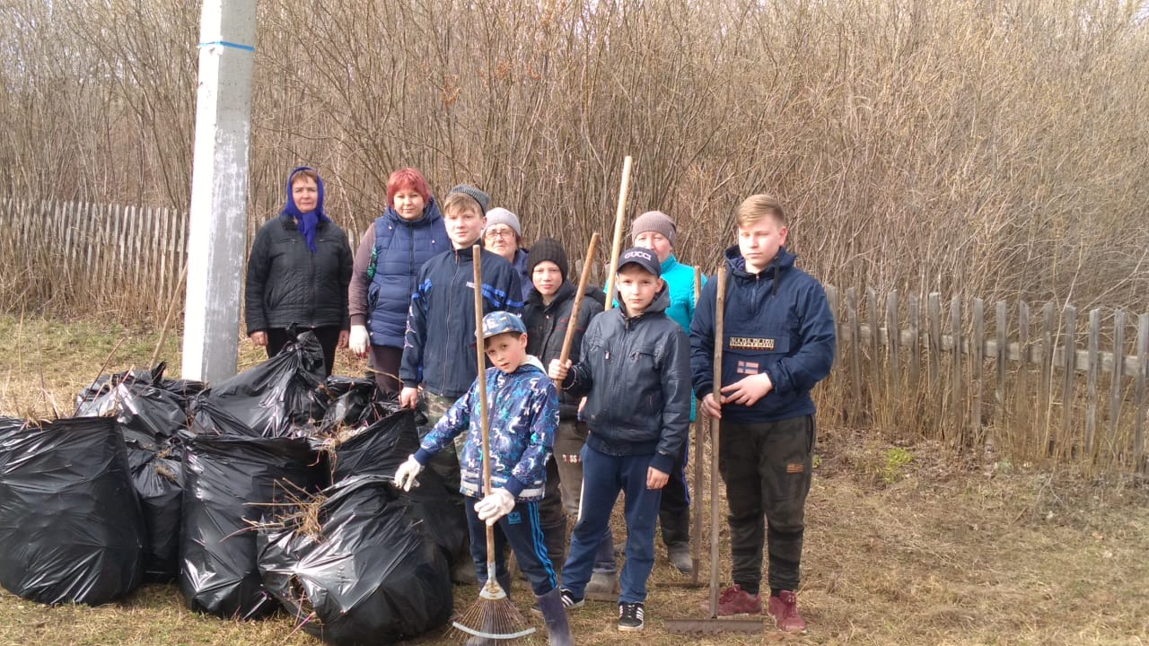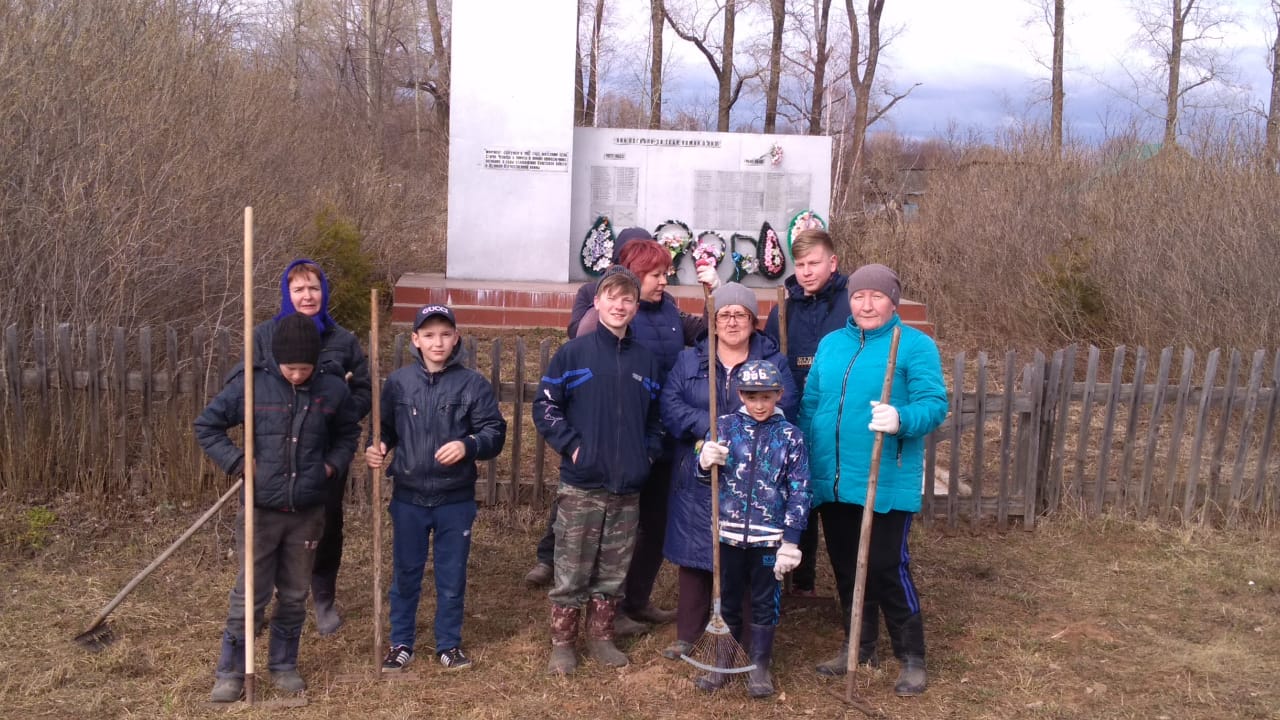 Сегодня ученики Азевской школы вместе с учителями провели уборку территории у памятника -монумента.