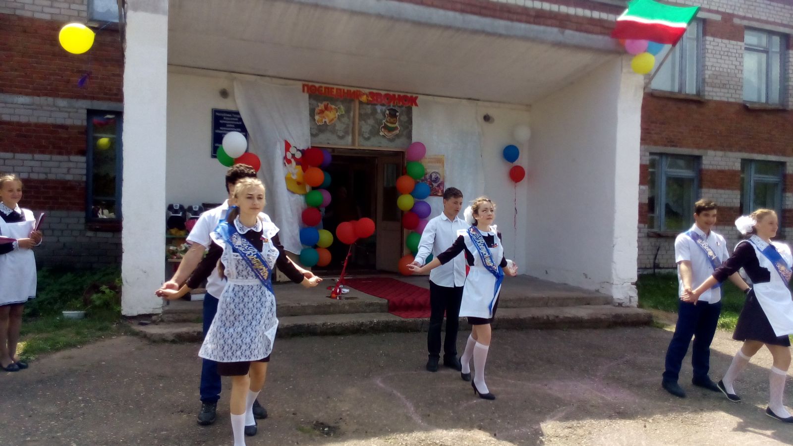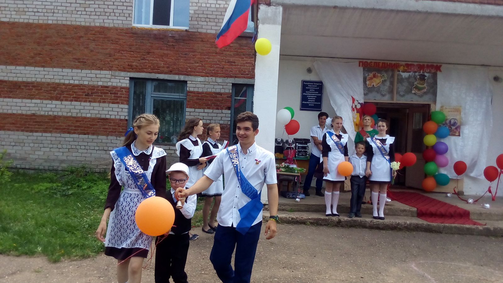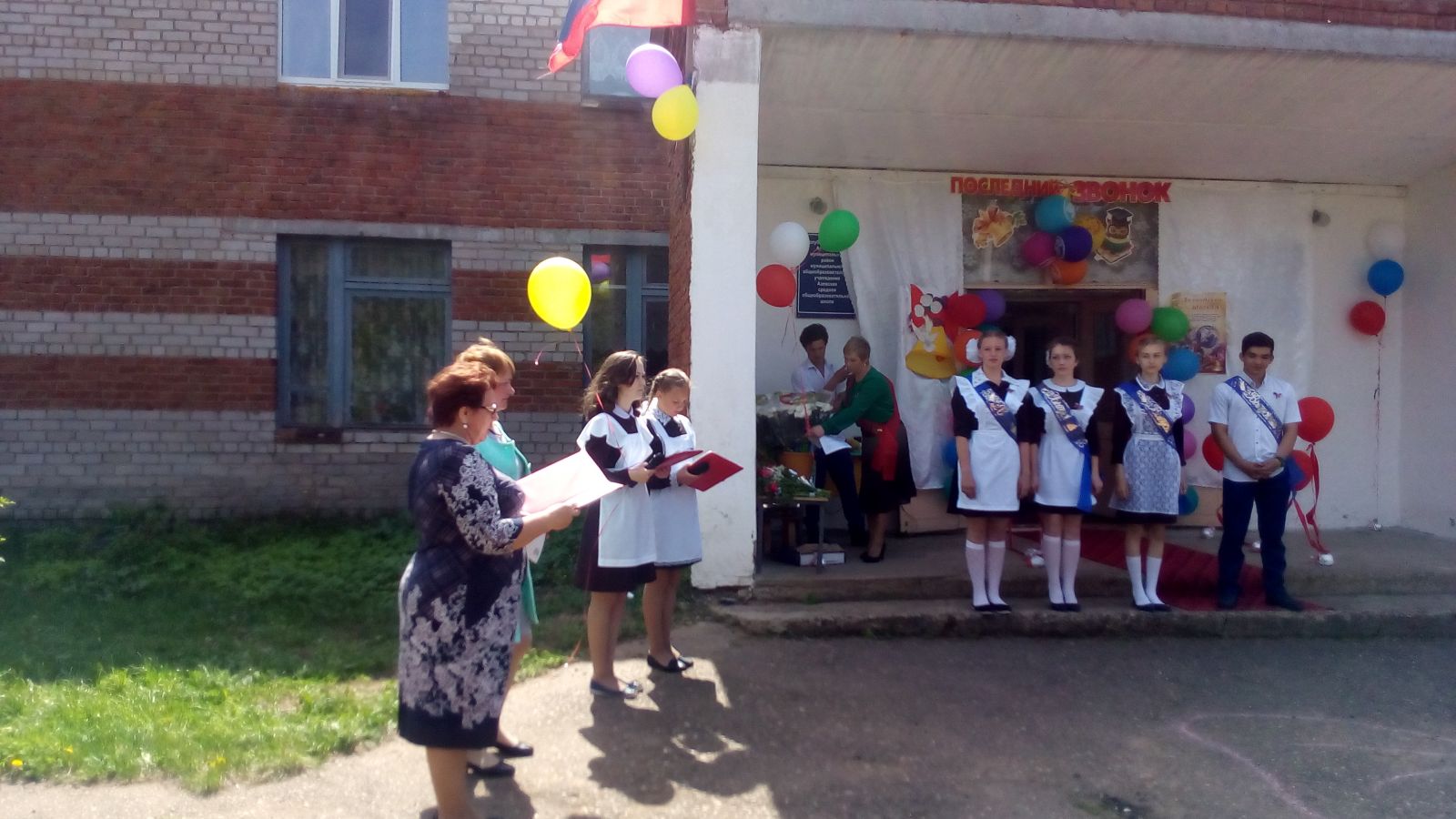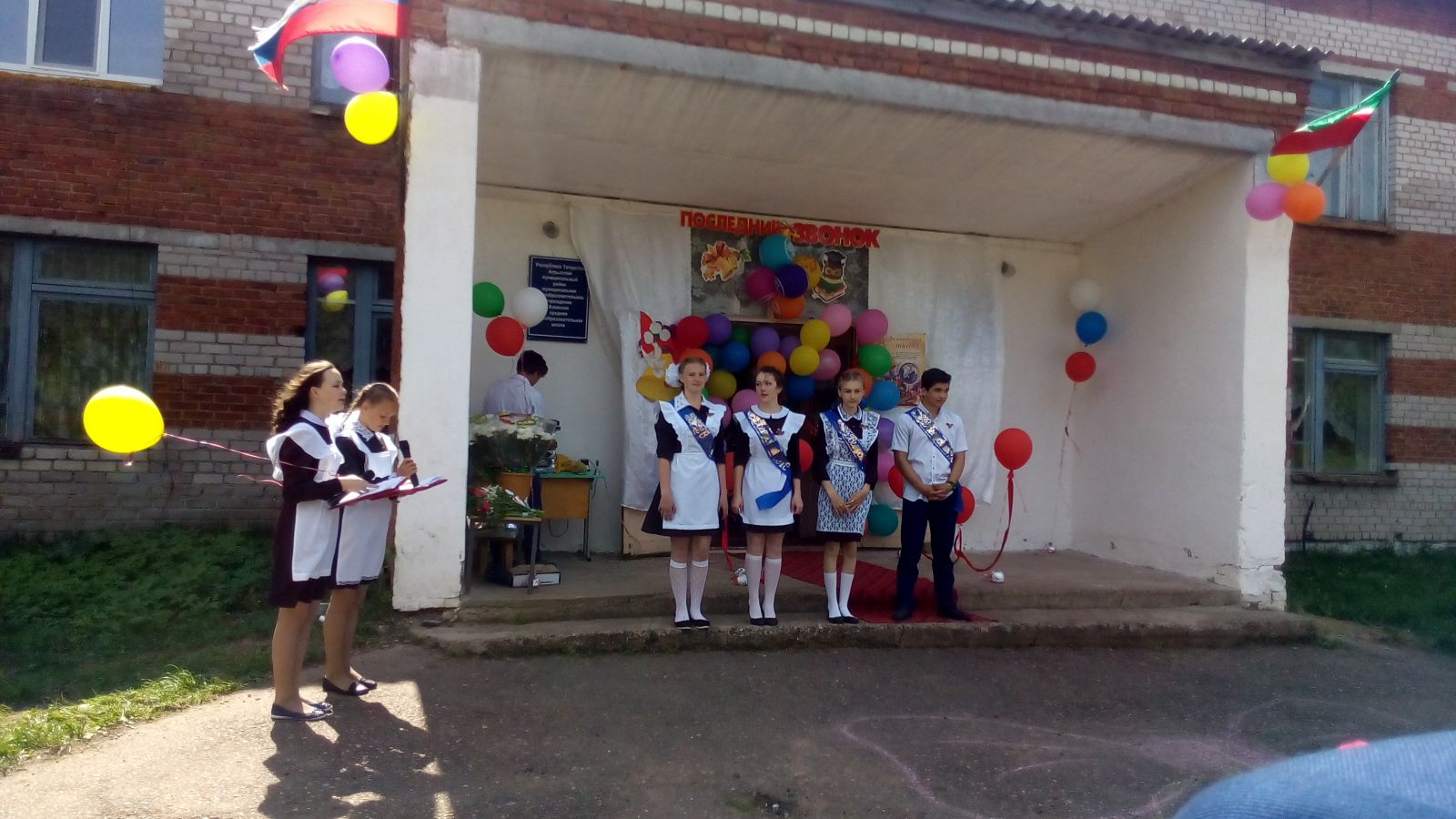Сегодня для четырех наших выпускников прозвенел Последний звонок в нашей основной школе. Было все: поздравления первых учителей и родителей, слова благодарности учителям, стихи и песни выпускников. Линейка закончилась школьным вальсом.В конце выпускники выпустили шары, как знак расставания с родной школой.