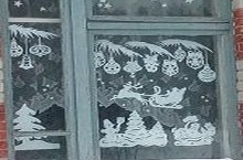 Какой-то волшебник-невидимка незаметно рисует узоры на окнах. Один узор краше другого. То терема высокие, то леса дремучие, а вот животные разные, символ Нового года, Дед Мороз,ангелочки и звезды.