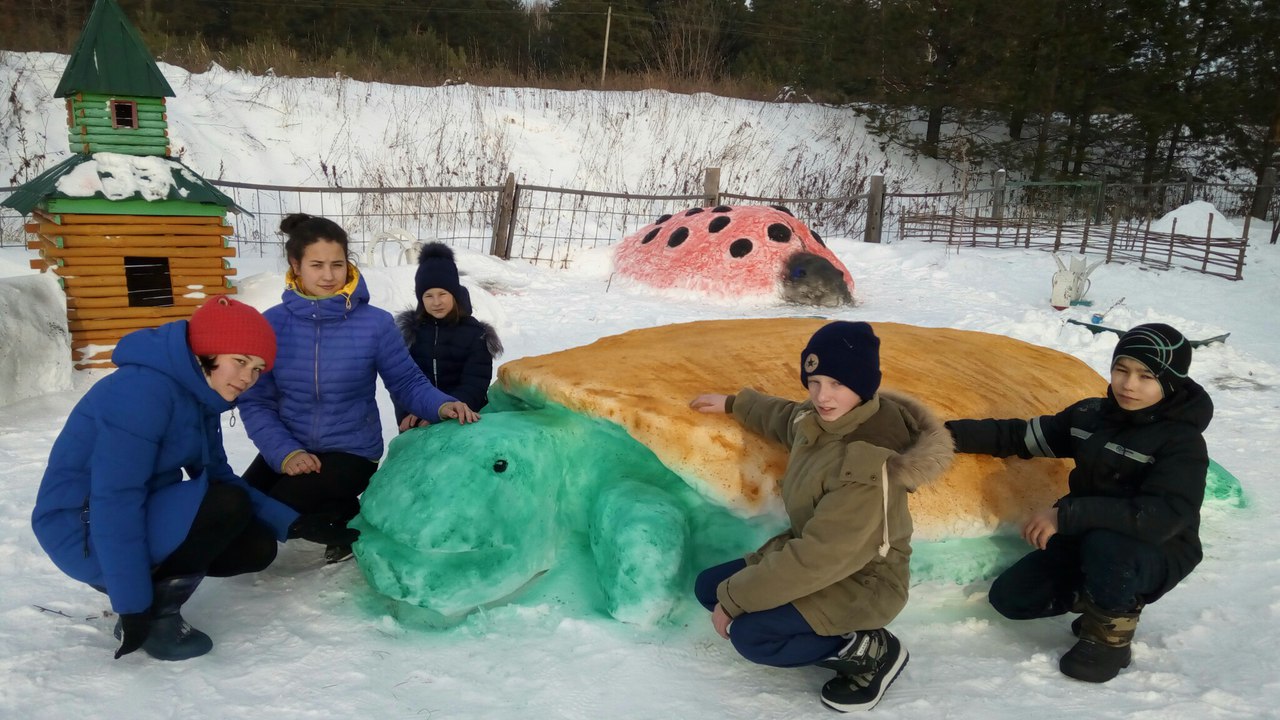 А детворе мороз не страшен, кто горку строит, кто в снежки играет, кто снежные фигуры лепит. Вот и в нашей школе прошел конкурс на снежную фигуру, победителями стали: