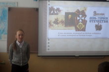 9 декабря 2016 года в школе библиотекарем школы проведено внеклассное мероприятие «День Героев Отечества» в форме литератуно-музыкальной композиции.