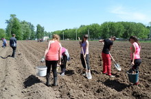 Вся школа сажала картофель.
