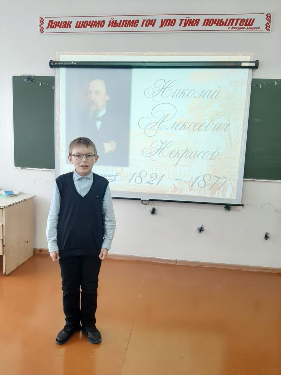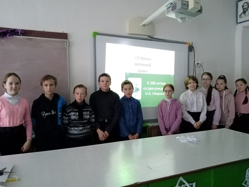 В 5 классе изучили творчество автора, в 6 классе провели видеоурок по теме " Страны великой сын". В 10 классе прошел литературный час "Некрасов - знаток народной жизни"