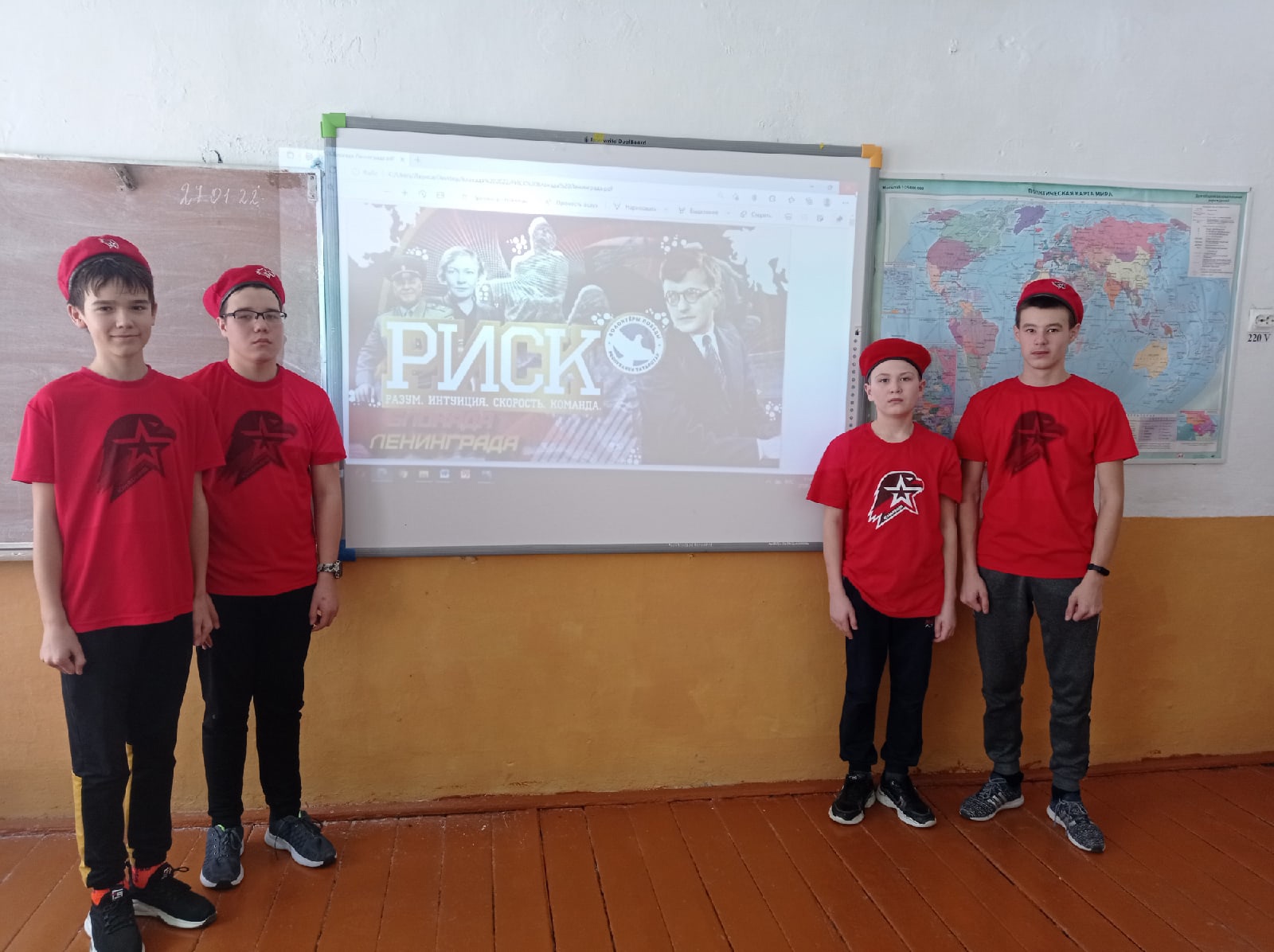 Опубликовано: 27.01.2022В Бимской школе прошла интеллектуальная игра РИСК (Разум, Интуиция, Скорость, Команда), посвящённая 78 годовщине прорыва блокады Ленинграда. Команда Юнармейцев и Волонтёров Победы сражались в знании исторических фактов, личностей. В итоге победила Дружба семиклассников.