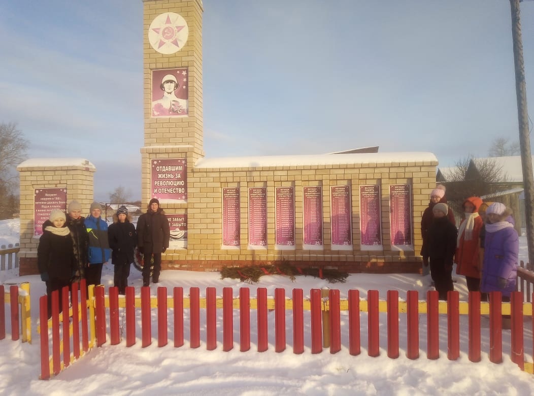 Юнармейцы МБОУ " Бимской СОШ возложили гирлянду к монументу Павшим воинам.