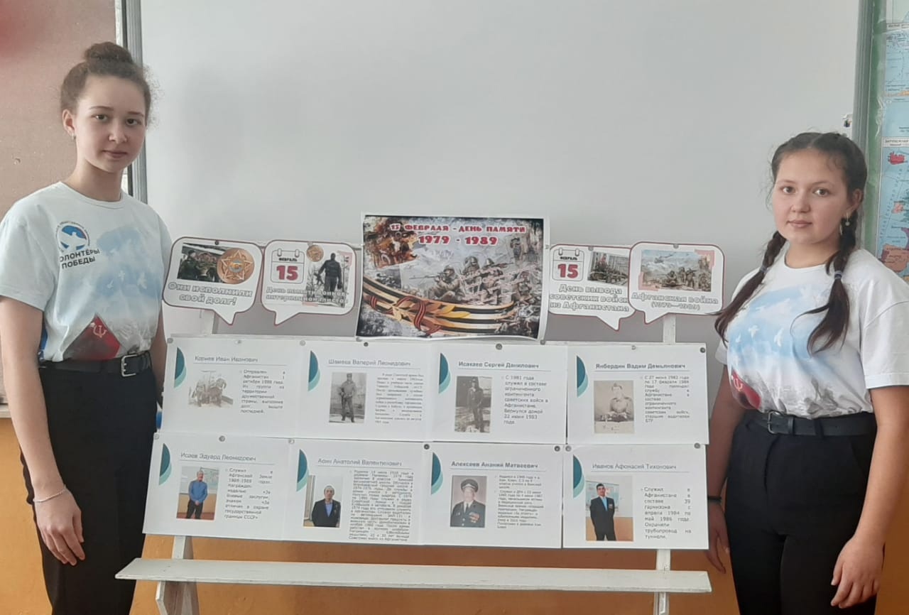 Опубликовано: 15.02.202315 февраля исполнилось 34 года выводу советских войск из территории Афганистана. 9 выпускников Бимской школы прошли через огонь Афганской войны. В школе Волонтеры Победы провели внеклассное мероприятие «Пока мы помним, мы живем». Учащимся 6 классов было рассказано об этой войне, вспомнили всех поименно, им были предложены видеофрагменты.. На мероприятии бил приглашен участник локальной войны Матвеев Юрий Анатольевич. Почтили светлую память всех погибших в этих войнах минутой молчания.