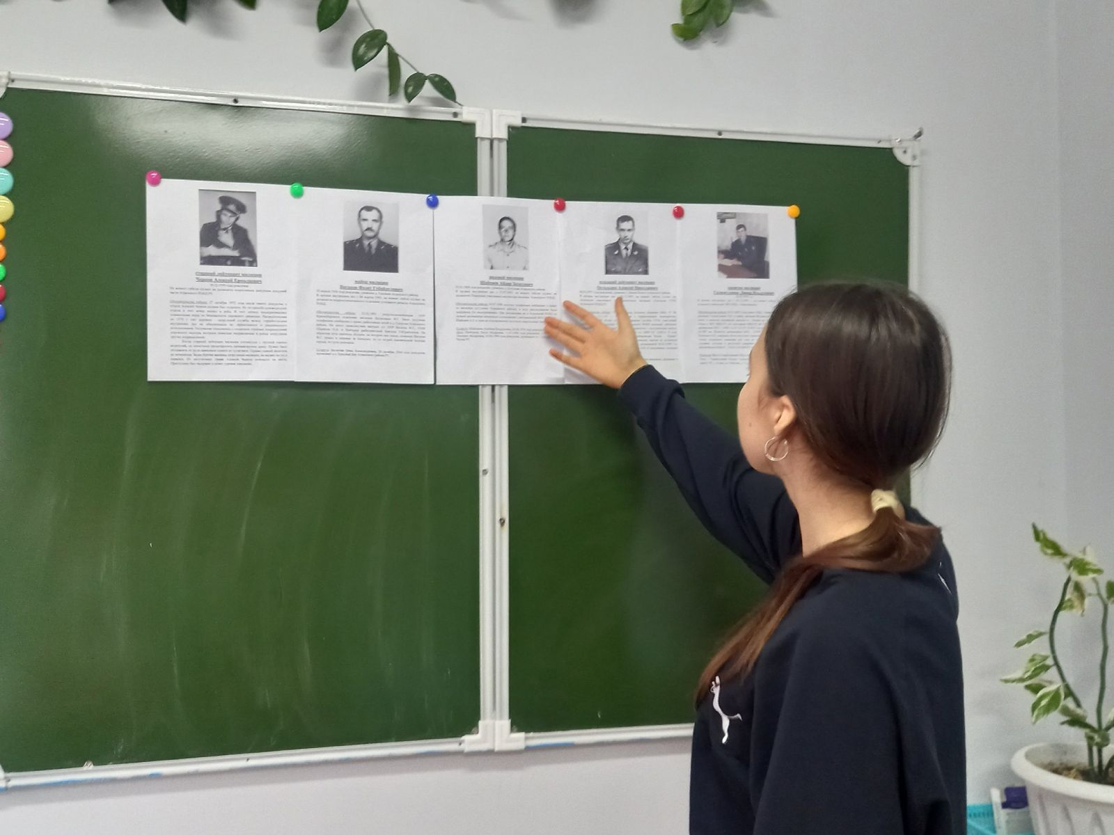 Этому посвящено мероприятие "Из поколения в поколение, помним", проведённое в старших классах Бимской СОШ. Где ребята изучили работы органов внутренних дел и вспомнили погибших при исполнении служебных обязанностей своего района.