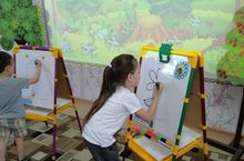 И сегодняшний день стал тематическим днем, посвященный забавам и играм с мячом. Дети с большим интересом играли в разные по сложности игры: «Мяч в кругу», «Прокати и догони», «Лови – бросай», «Мини-баскетбол». Старшие дети научили играть малышей в свои любимые игры: «Съедобное – несъедобное», «Вышибалы», «Я знаю пять имен….». А также рассказывали друг другу о различных видах мячей и делились своими впечатлениями в изобразительной деятельности. -