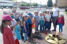 22 июня воспитатели детского сада совместно с нашими воспитанниками организовали целевую экскурсию в сквер Победы. Дружным строем шли дети, напевая военные песни. Почтили минутой молчания память павших героев, возложив цветы к Вечному Огню. Для подрастающего поколения очень важно знать и почитать героев своей страны, своего города.