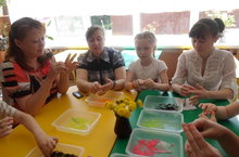 Дети подготовительной группы: Насибуллина Элина, Хасанова Эмилина, Калимуллин Артур, Магдануров Инсаф показали для педагогов детского сада мастер-класс по плетению браслетов из разноцветных, силиконовых резинок. Как же взрослые были удивлены нашими умными, талантливыми, творческими детьми! Они умеют всё!!! Плетение продолжили с остальными детьми подготовительной группы. Все были так увлечены интереснейшим делом!!! Хотим сказать "спасибо" Хасановой Эмилине, которая не пожалела и принесла из дома для мастер-класса целую коробку разноцветных резиночек. Это еще раз доказывает, что наши дети добрые и отзывчивые!