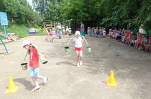 Сегодня в нашем детском саду прошел народный праздник Сабантуй. Ребята приветствовали праздник татарскими стихами и песнями. С огромным удовольствием попробывали свои силу, ловкость, быстроту в интересных состязаниях "Бег в мешках", "По водицу", "Скачки на майдане". Садыков Ильназ из старшей группы с первого раза смог "разбить горшок" с закрытыми глазами. Даже педагоги не смогли усидеть на местах и приняли участие в конкурсах наравне с детьми. Веселый праздник закончился танцами и угощением.