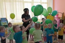 Очень ярко, интересно прошел проект "Разноцветная неделя" в нашем детском саду. Каждый день в разных группах дети приходили в определенном цвете, проходили интересные задания и многое другое. И каждый раз родители с интересом и нетерпением ждали, какой же цвет объявят воспитатели дальше...Например, в младшей группе Елена Александровна один из дней назвала "День зеленого цвета". Все началось с минутки вхождения в день, был обьявлен зеленый флешмоб "Какое все зеленое". Далее дети занялись интерьерным озеленением, а на прогулке состоялся парад с зелеными шарами. А закончился день творчеством "Где спрятался зеленый цвет?".