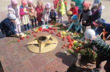 После торжественной линейки наши дети старшей и подготовительной групп сходили к памятникам для возложения цветов.
