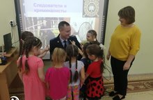 В рамках проведения антикоррупционных мероприятий в старшей группе прошла образовательная деятельность "Есть такая важная профессия" с привлечением сотрудника ОВД. Майор юстиции старший следователь следственного отделения ОВД Агрызского района Галявиев Ильшат Ильгизарович познакомил детей со своей профессией, рассказал о труде работников МВД.