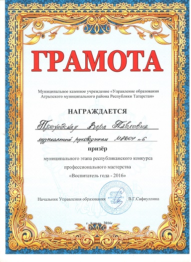 24.2.Призер в муниципальном конкурсе "Воспитатель года-2016"