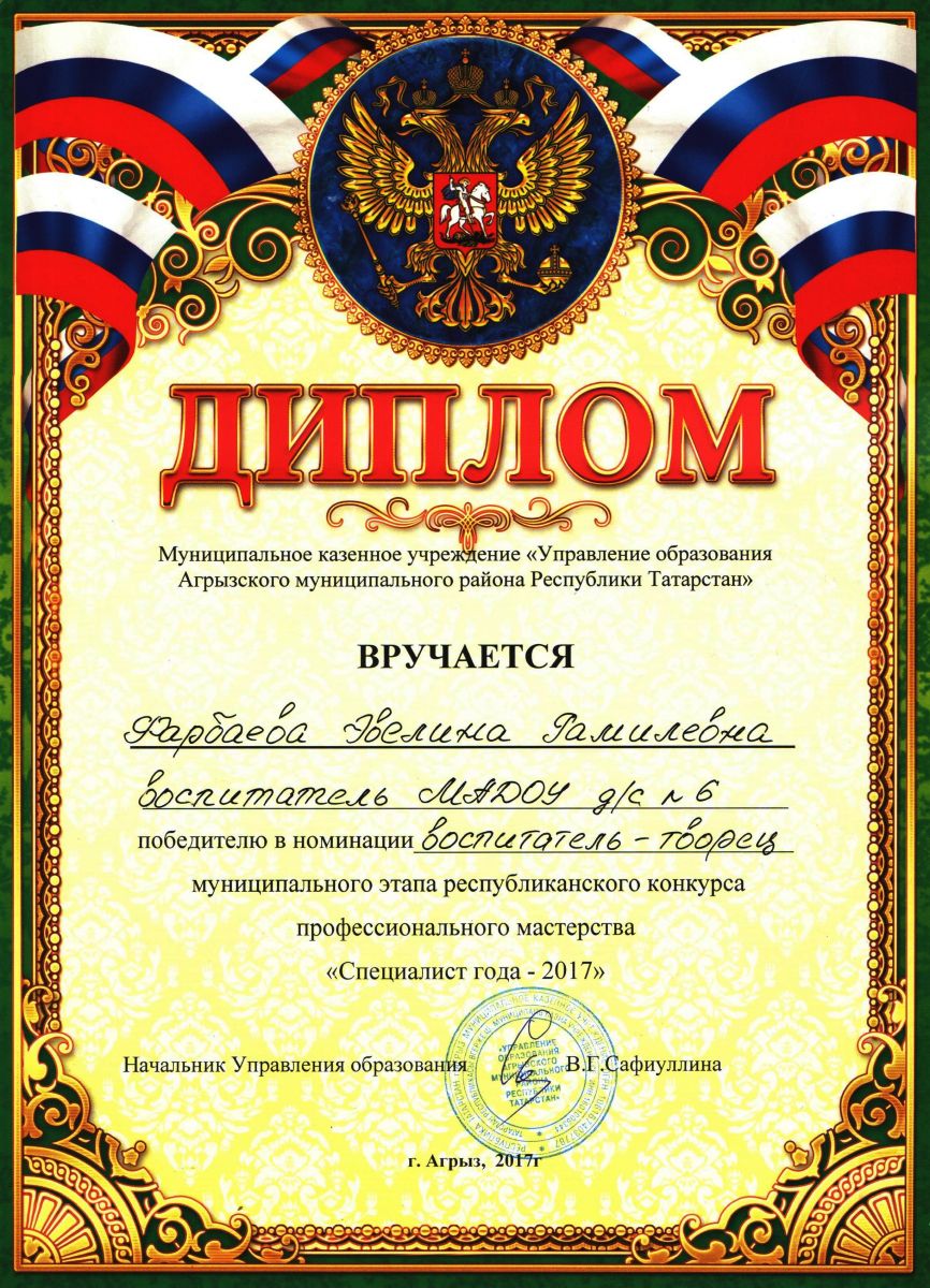34.Диплом лауреата Всероссийского конкурса "Лучшая образовательная организация - 2017"
