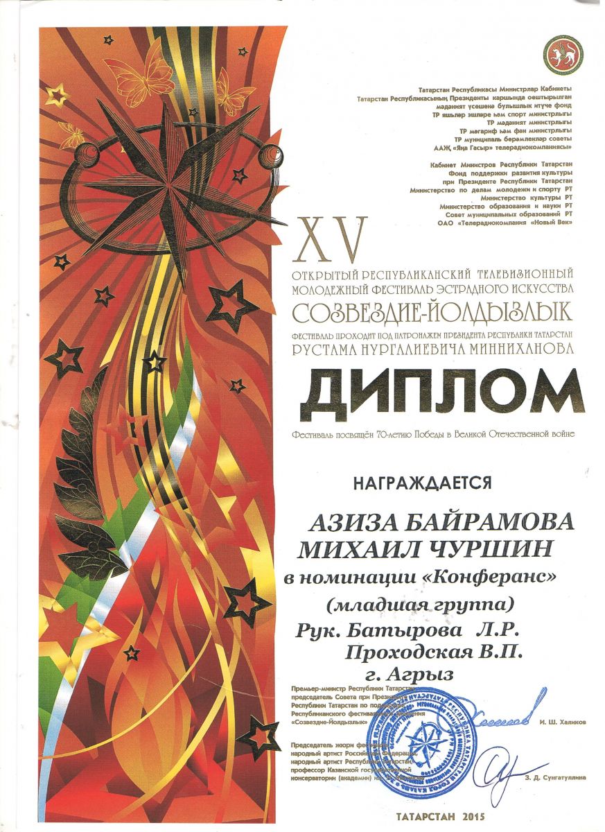 3. Грамота за победу в городском детском конкурсе красоты и талантов "Мини-мисс Агрыз 2014"