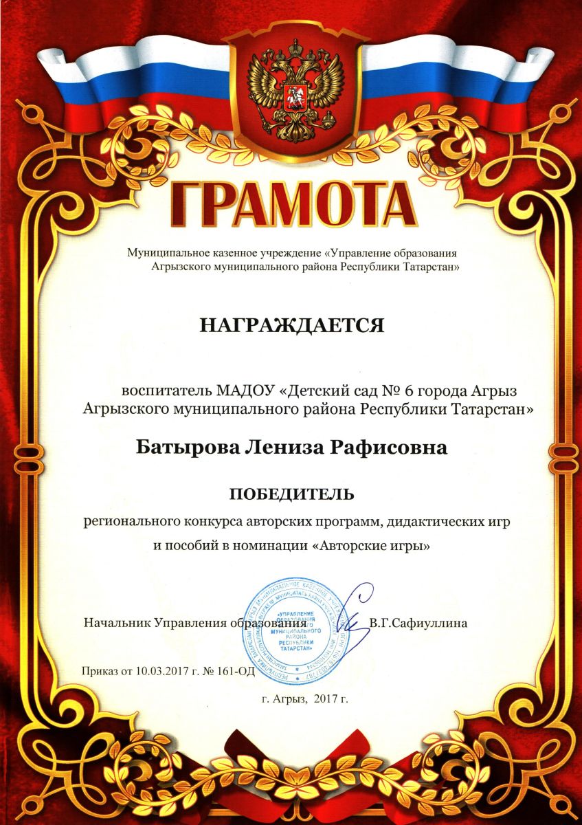 32.Победитель регионального конкурса "Авторские игры", Батырова Л.Р.