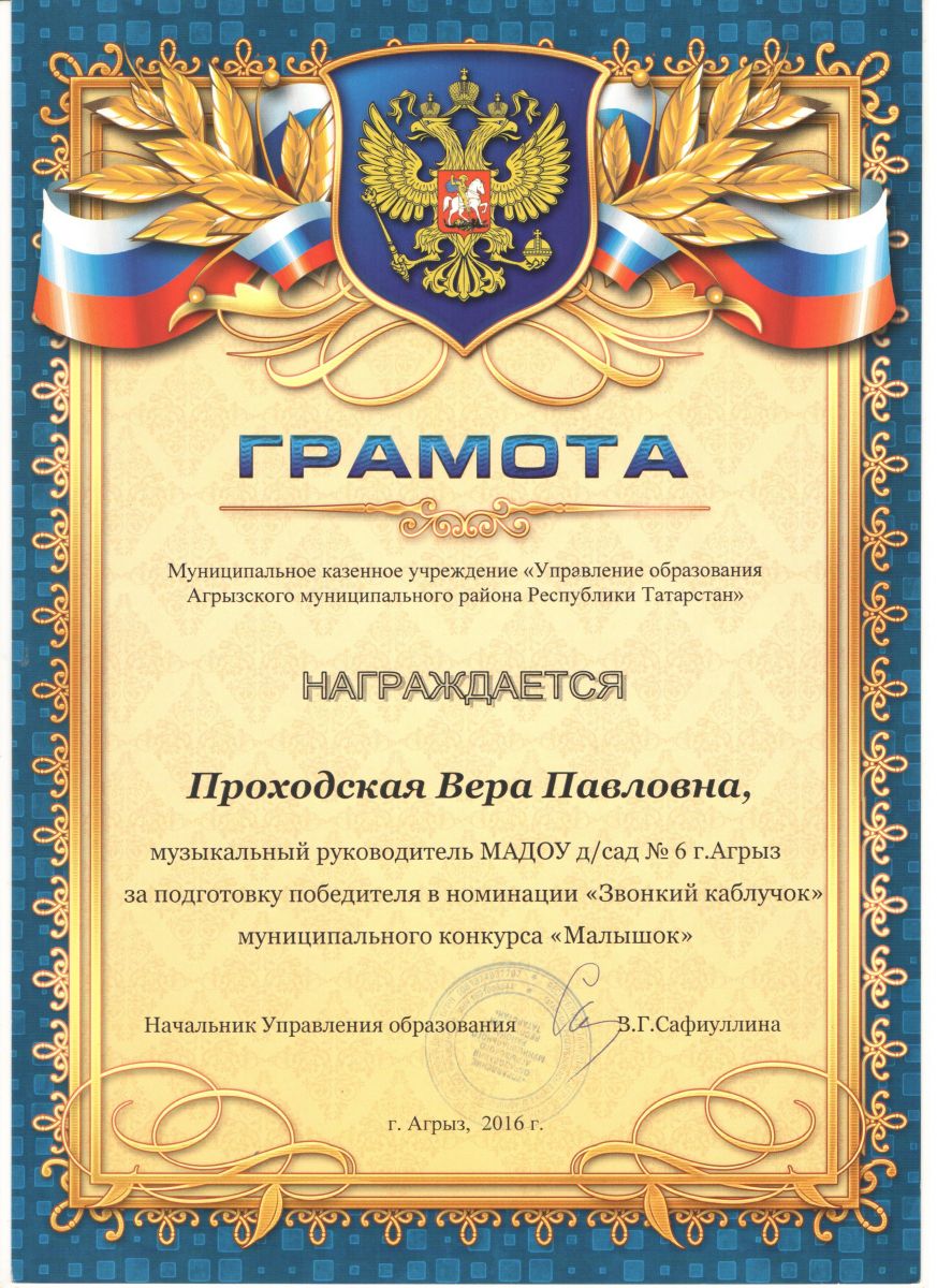 24.1.Грамота за подготовку победителя в муниципальном конкурсе "Малышок", 2016